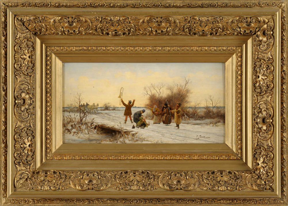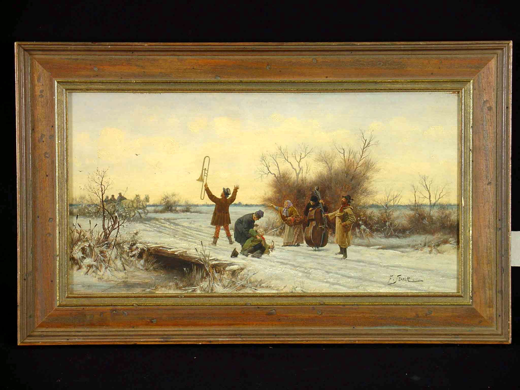 Wydaje mi się, że poważny kolekcjoner patrzy nie tylko nie nazwisko ale też i oryginalność tematu. Wszelkie ‘orkiestry wiejskie‘ Franciszka Streitta to tematy często spotykane w jego twórczości i kompozycje były powielane przez niego z niewielkimi zmianami. Poniżej trzy podobne kompozycje tegoż autora.