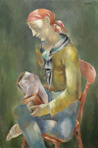 Following on from prior representations of the wistful solitary drinker by Edouard Manet, Edgar Degas and Pablo Picasso, Zak reconfigures this visual trope through his own uniquely authentic means. Utilising techniques derived from a prior engagement with the Nabis and Primitivism, Zak stylises and elongates his figure as well as deliberately flattening the picture space using fields of un-modulated colour. At the same time however, Zak retains a sensitive appreciation of light and shade in an effect akin to renaissance chiaroscuro to produce a sense of depth and modelling. These opposing visual devices result in an aesthetically unsettling and yet immediately recognisable composition. As Irena Kossowska, a critic of the artist’s work notes, ‘Zak considered himself an opponent of the avant-garde, though his painting seemed to absorb many of the experiments of [its] innovators which he adapted according to principles of his own creative stance.’ (http://culture.pl/en/artist/eugeniusz-eugene-zak, accessed 19 December 2013).