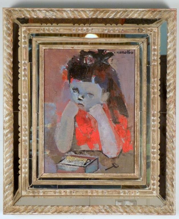 dwa oleje na płótnie z typowym tematem tego malarza, portrety dzieci (wycenione pomiędzy $2,000 -3,500), oba w chyba w oryginalnie zaprojektowanych przez artystę ramach