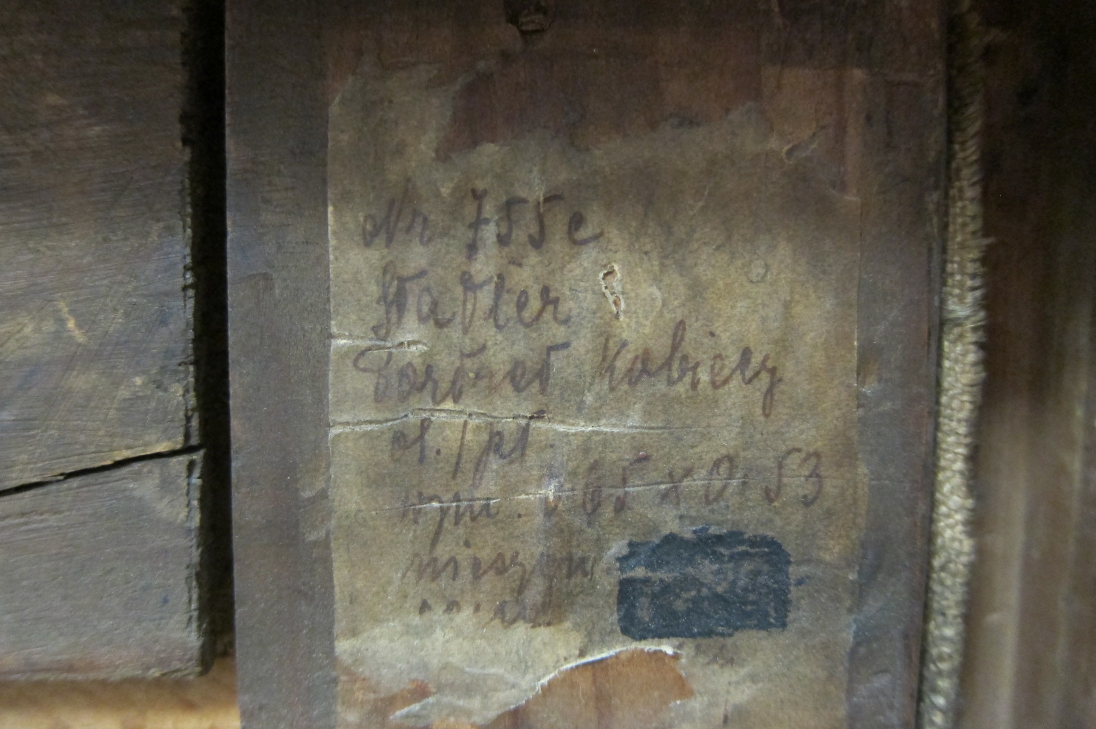 Atrybucja na podstawie odręcznie pisanej naklejki na ramie: