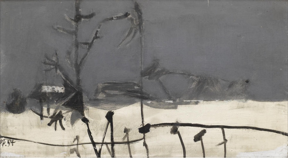 Lot 35. Peter Potworowski (Polish, 1898-1962). Winter landscape, initialled and dated ‘P.P.’54’ (lower left), oil on canvas, 26 x 45.5cm (10 1/4 x 18in). PROVENANCE: Gift from the artist to the present owner in the 1950s