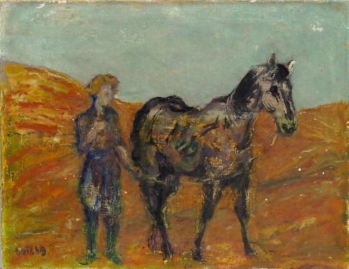 Lot 1683. Henryk Gotlib, Polish/British 1890-1966- Horse and figure in a landscape; oil on canvas, signed, 35×45.5cm., (unframed). Estimate: £600 – £800. Roseberys. 19 Mar 2014.