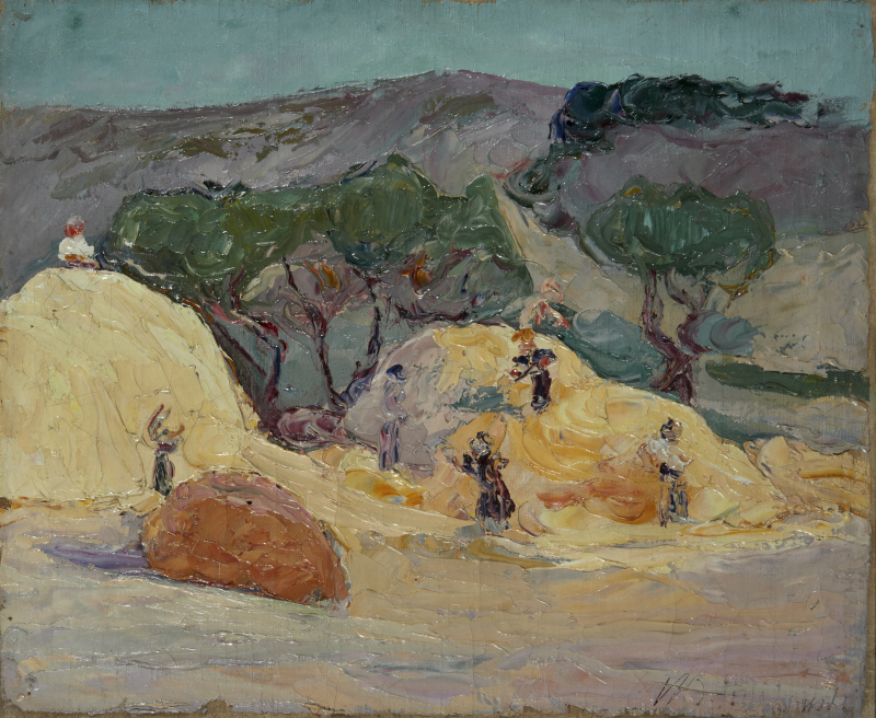 Lot 1669. Wladimir de TERLIKOWSKI (Poraj 1873 – Paris 1951) Les moissons. Huile sur toile, 50 x 61 cm. Signé en bas à droite W de Terlikowski. Estimate : 3 500 / 4 000 €.