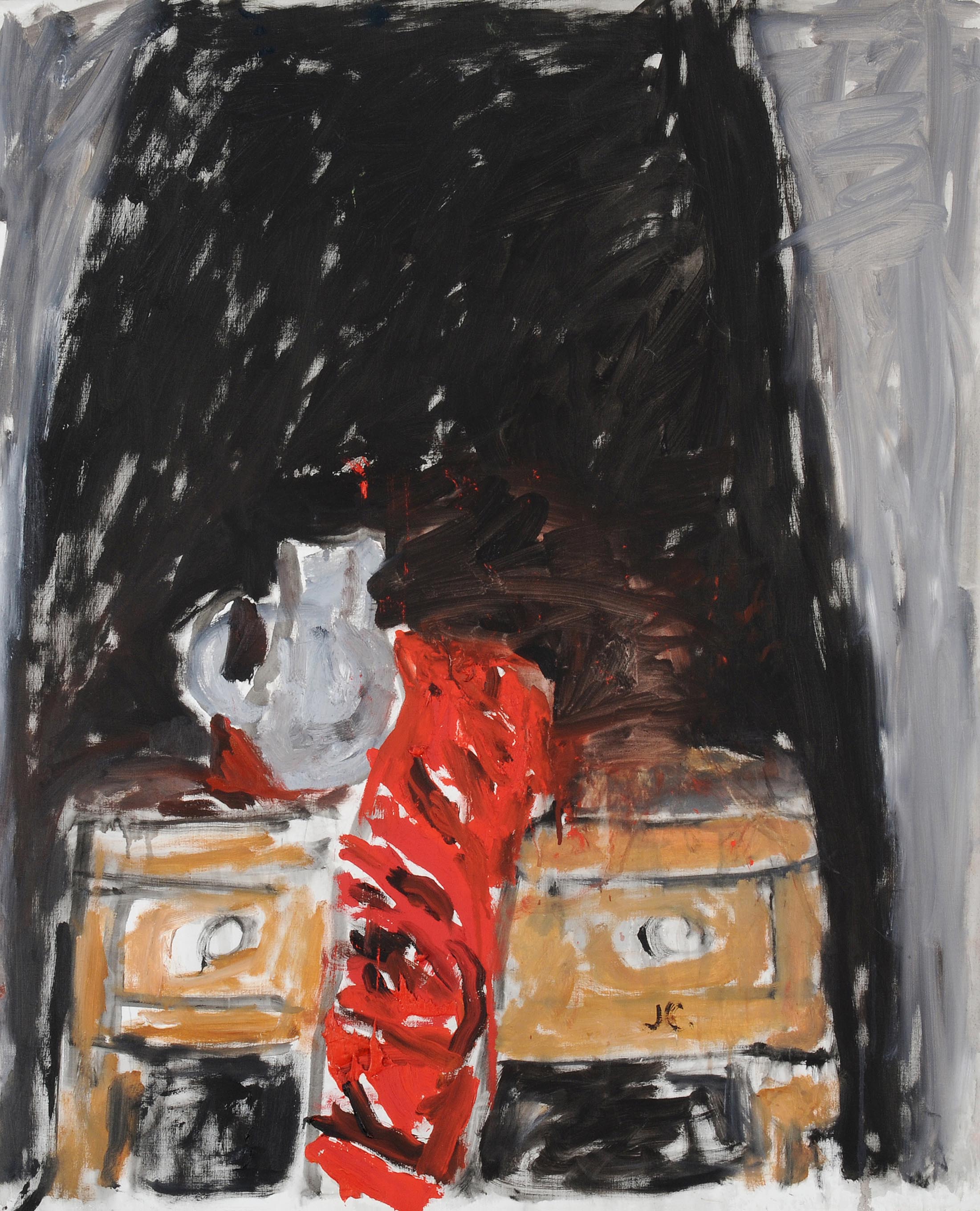 157. Czapski, Józef (Prag 1896-1993 Maisons-Laffitte). “Cruche grise et Linge rouge“. 1987. Öl auf Leinwand. Unten rechts monogrammiert. Verso auf Etikett betitelt und datiert. 73×60 cm. Schätzung: CHF 2500 – 3500. Schuler. 26. – 29. März 2014. [Sprzedano CHF 6,500]