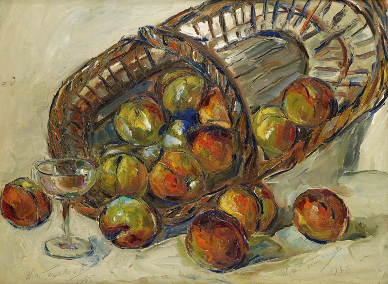 Lot 62. Vladimir de TERLIKOWSKI (Varsovie 1873-Paris 1951). Nature morte aux fruits, 1945. Huile sur toile, signée et datée en bas à gauche et à droite; 46 x 61 cm. Estimation : 1 800€ / 2 000€.