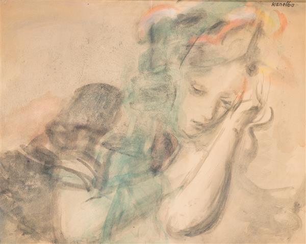 | Lot 246. Raymond Kanelba (1897-1960) Maria. Aquarelle sur papier Signée en haut à droite 65 x 77cm. Estimation : € 1,000-1,500. |