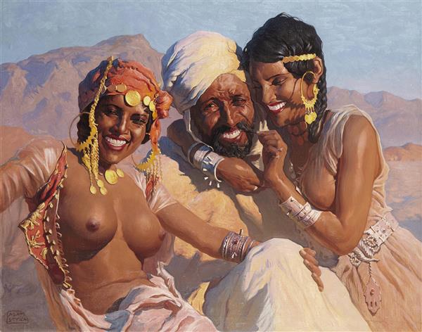 | Lot 140. ADAM STYKA (1890-1969) TROIS JEUNES GENS SOUS LE SOLEIL DU MAROC Huile sur toile signée en bas à gauche. 73 X 92 CM. Estimation : € 50,000-70,000 |