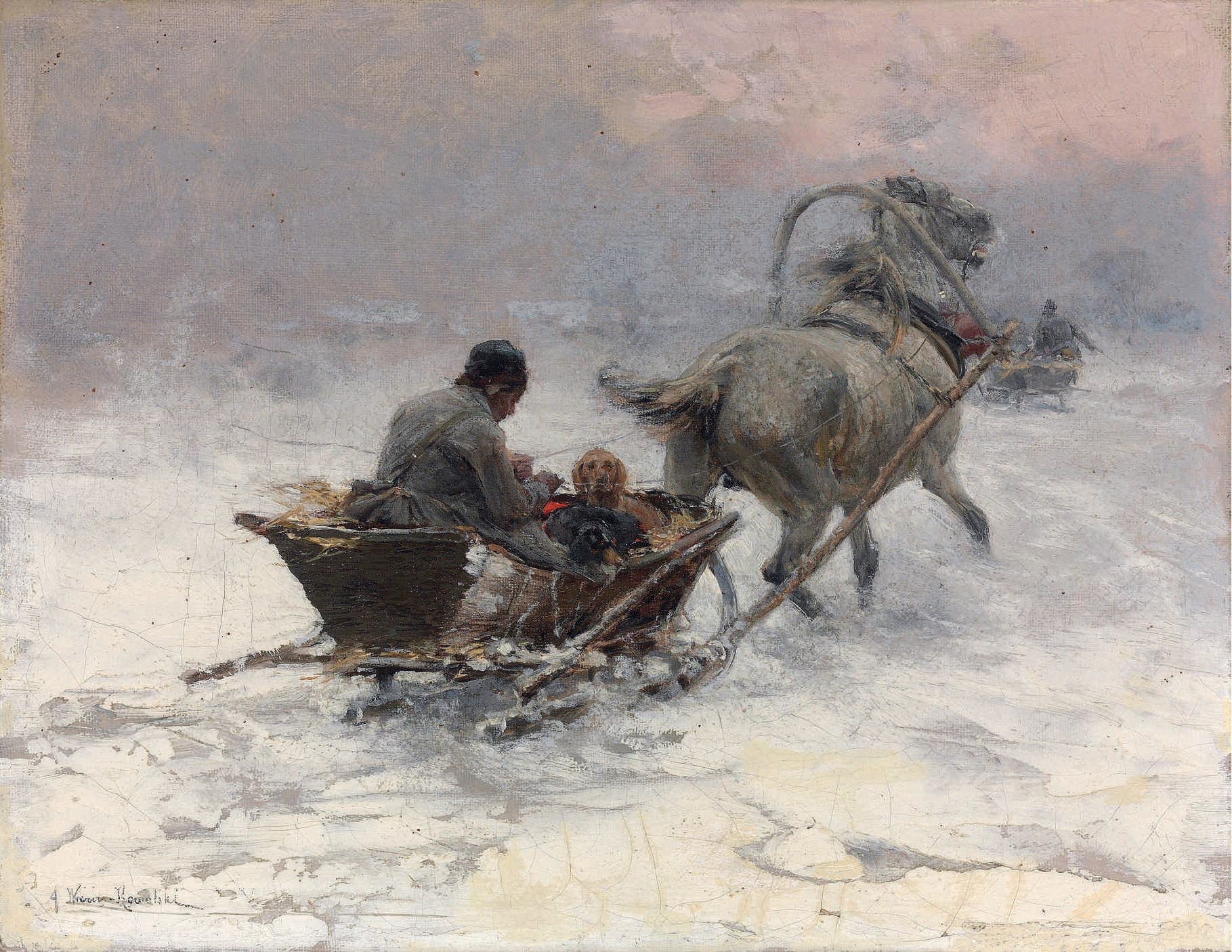 Lot 38. Alfred Wierusz-Kowalski (POLISH, 1849 1915). Sleight ride, signed ‘A Wierusz-Kowalski’; (lower left);oil on canvas;9.5 x 12 in. (24 z 30.5 cm.). £15,000-20,000.