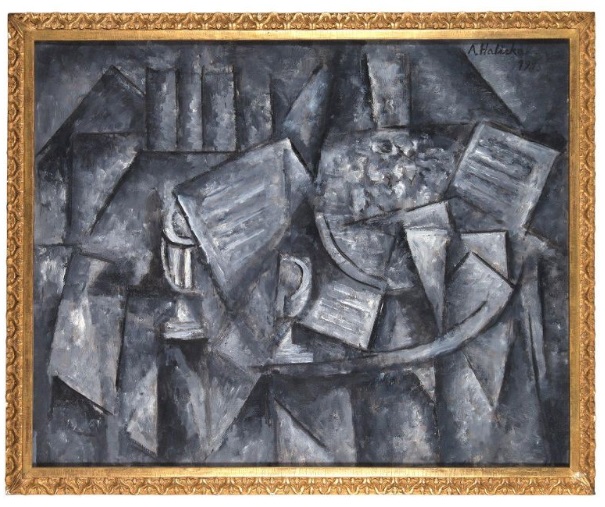 Lot 9. Alice Halicka (1895-1975). Cubist composition with layed violin, glass and sheet ofpaper. Oil on canvas dated on the upper left side 1918; 19 11/16 x 24 in. 10 000 / 12 000 €. Certified upon a photograph by Alice Halicka.