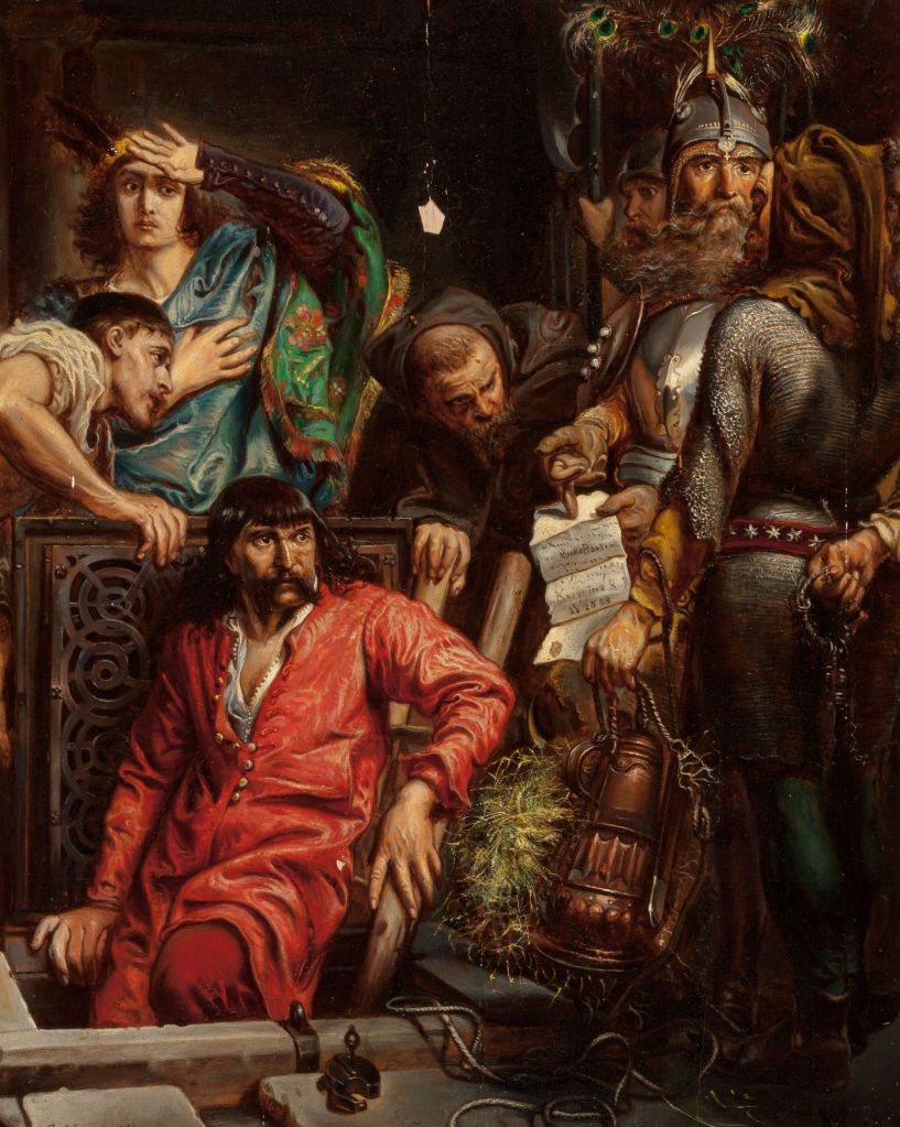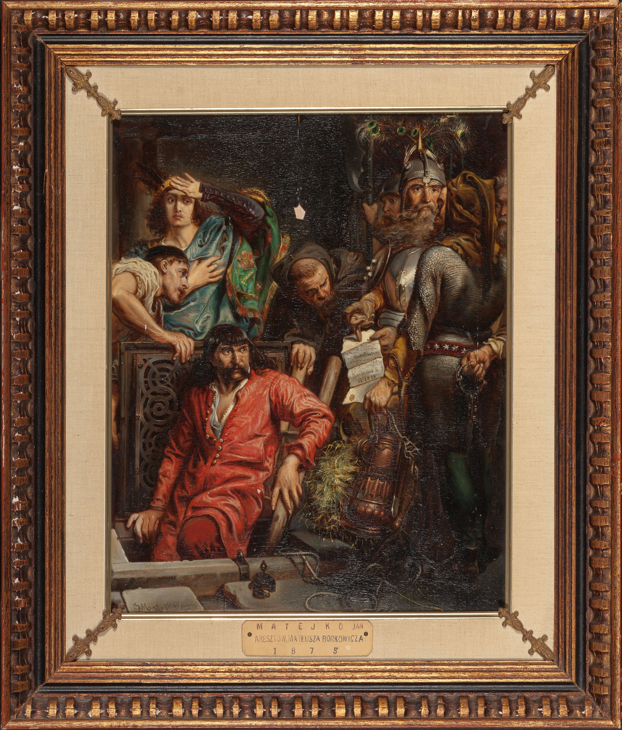 JAN MATEJKO ( 1838-1893). Maciej Borkowicz, wojewoda poznański, skazany na śmierć głodową, 1873. Olej na desce; 39.7 x 30.8 cm. Sygnowany i datowany w dolnym lewym rogu.