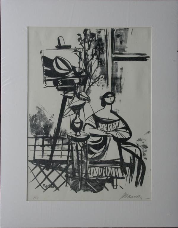 Lot 20. Sigmund Menkes (1896-1976). Still Life with Seated Woman, c. 1950, Lithograph, 15.5″ x 11.5″, SLL in Plate and SLR in Pencil, Unframed. Estimate $150 – $200.