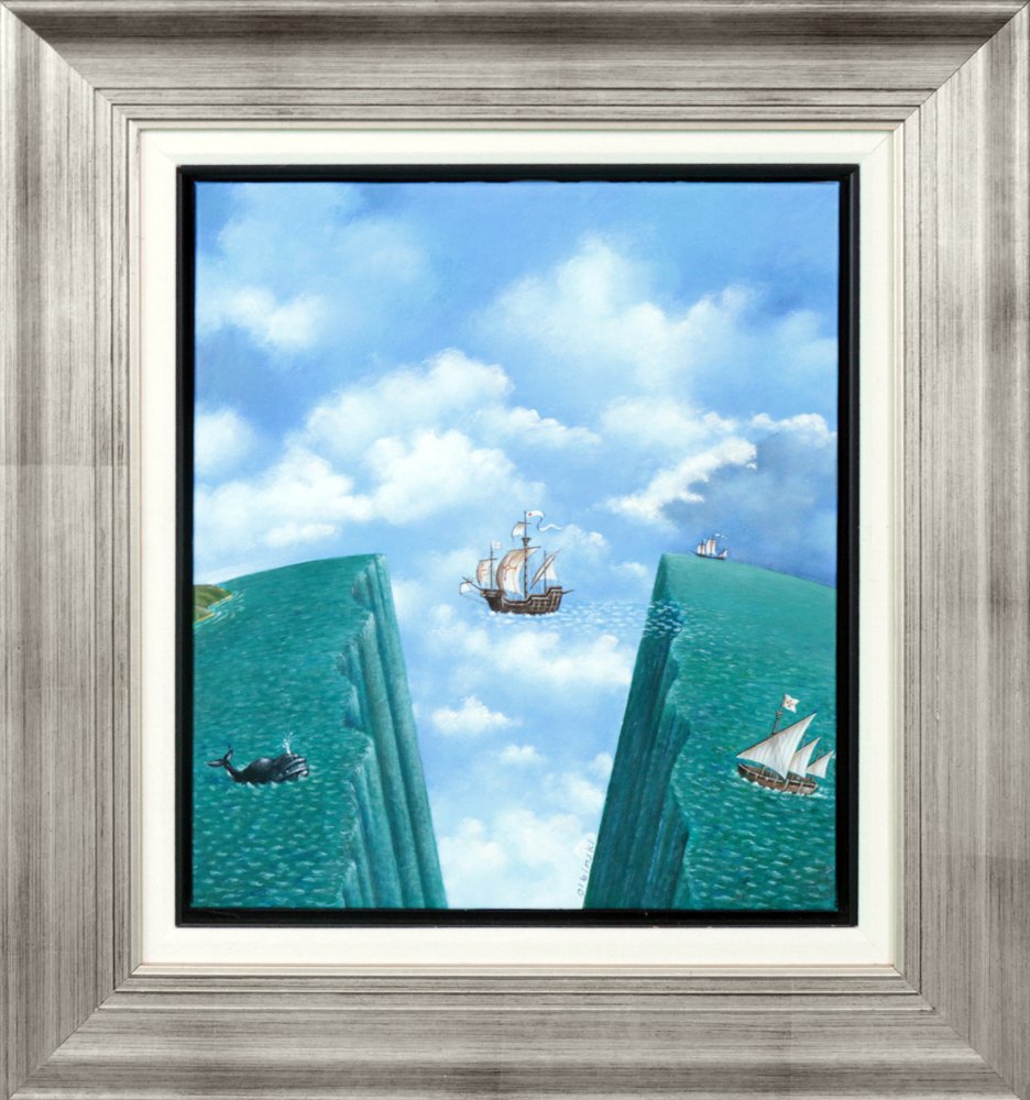 An original painting by artist Rafal Olbinski, “Ship Full of Jews”. This painting was featured in OMNI magazine. Measures 56cm x 62cm. Also included in this lot is a framed copy of the feature from OMNI magazine. Measures 58cm x 45cm.
