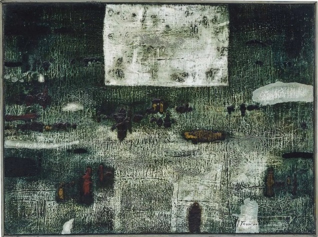 Lot 85. Jan Tarasin (Polish, 1926-2009). Przedmioty. Signed and dated ‘J. Tarasin 64’ (lower right); signed and dated again and titled ‘JAN TARASIN 1964 “PRZEDMIOTY”‘ (on the reverse); oil on canvas; 29½ x 39½ in. (75 x 100.3 cm.). Estimate $15,000 – $20,000.
