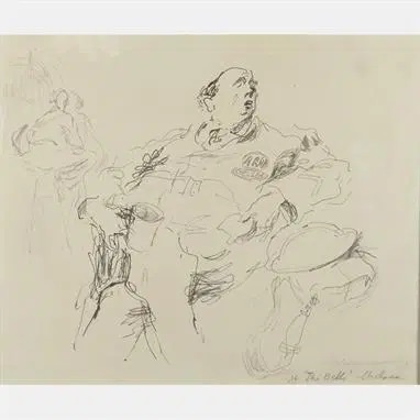 Feliks Topolski (1907 – 1989) Posted by 72blog104 0 Lot 82. FELIKS TOPOLSKI (POLISH, 1907-1989) AT `THE BELLS` – CHELSEA AIR RAID WARDEN signed and inscribed with title l.r; pen and ink 19cm x 23cm; 7 1/2in x 9in/ Estimate: £600 – £800. Harry Moore-Gwyn. 08 Jul 2014. Share this: Click to share on X (Opens in new window) X Click to share on Facebook (Opens in new window) Facebook Like Loading... Related