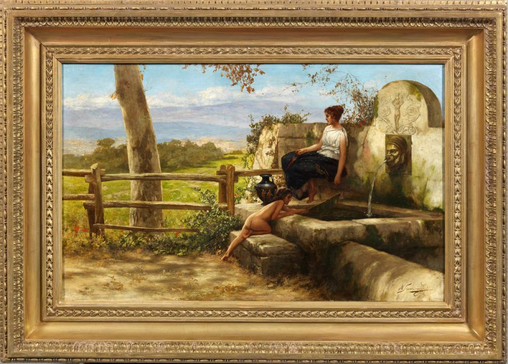At the fountain. Oil on canvas. Signed. Reserve 18,500 €.