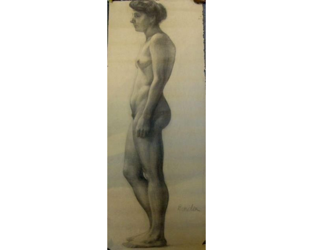LOT n°220. Stanislas BENDER Ecole polonaise . Portrait d’homme, femmes nues Quatre fusains et sanguines sur papier signés Accidents. Estimation : 200 – 300 €Aguttes. 10/10/14.