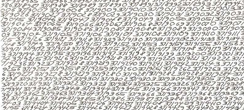 signed and titled ‘Opalka 1965/1-8, Detail 2890944-2910059’ (on the reverse)