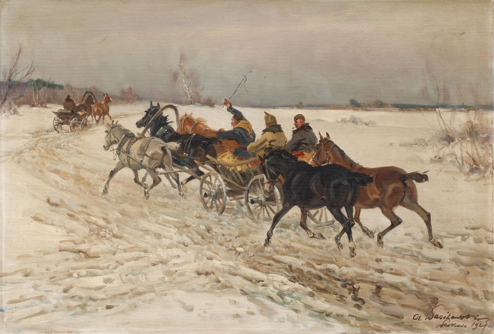 Lot 813. WASILEWSKI, CZESLAW 1875 – 1945. Winter Landscape with Vehicles. Oil on canvas. 50 x 72,5 cm. Signed and dated lower right: Cz. Wasilewski / Warsaw 1927. Framed. Estimate 500 – 600 €. Van Ham. 11/14/14.