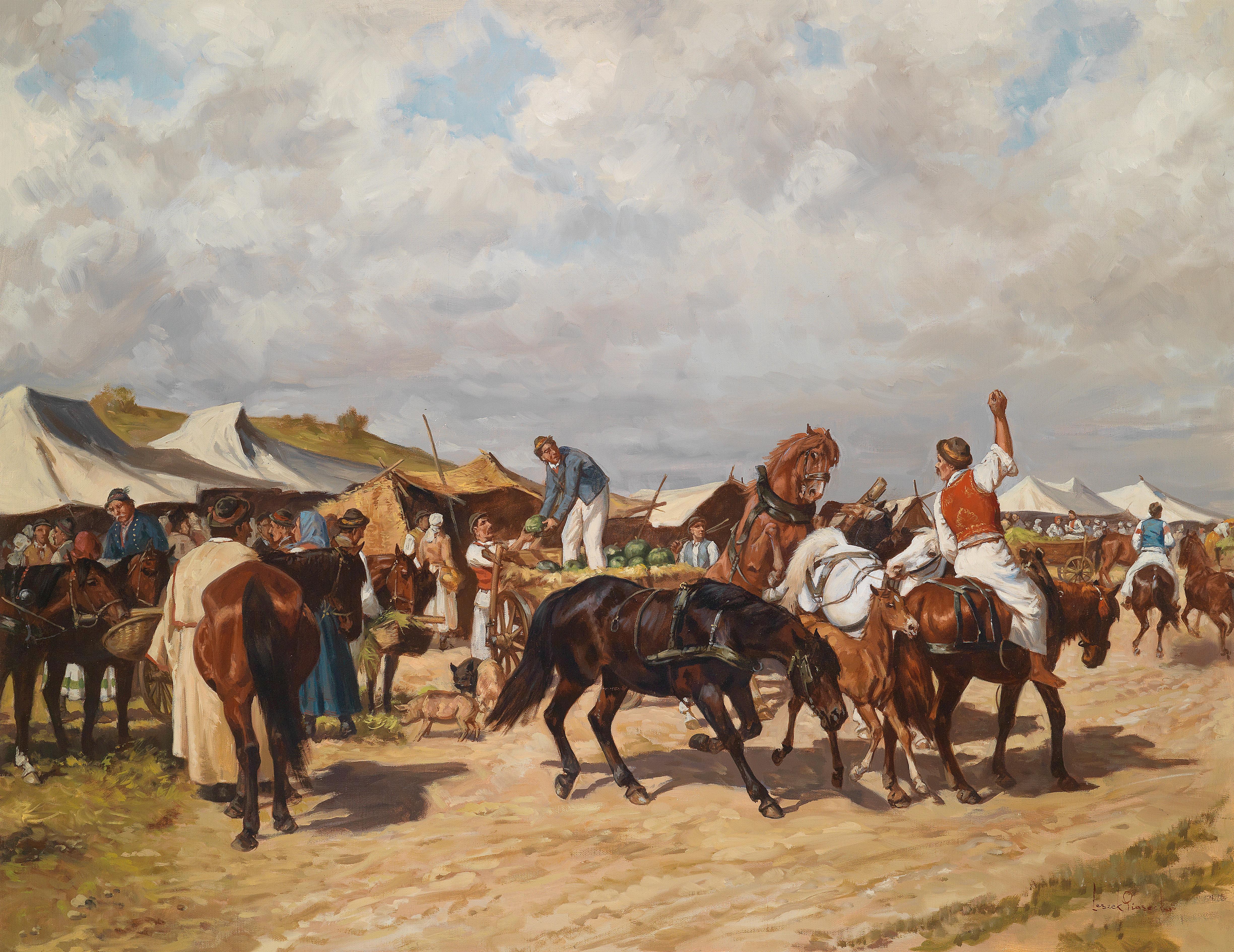 Praca Piaseckiego dla niewybrednego początkującego kolekcjonera: tania ($$) kompozycja, duża kompozycja, rozbudowana kompozycja… i to wszystko co można powiedziec dobrego. To moga byc atrybuty jakie przyciagna kogos, kto lubi konie, jarmarki i kto będzie miał doprawdę namiastkę donrej szkoły monachijskiej z naciskiem na słowo ‘namiastkę’.
