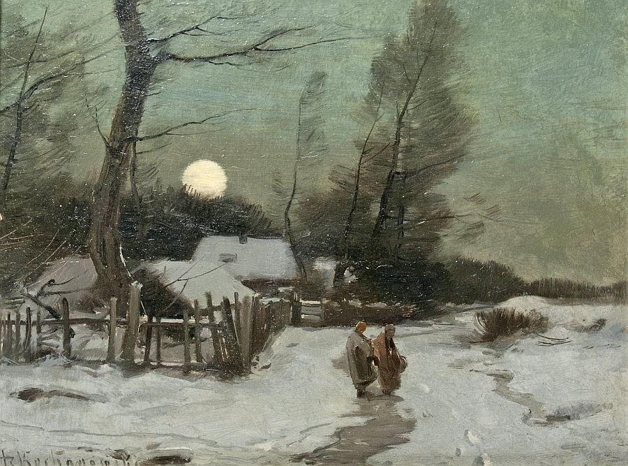 Oil over partial gold background on canvas. Signed. – Unframed. Occas. with small burst of paint. Canvas at the turn-up partly with defective spots. In patches with craquelure and tiny brown stains at the surface. Partly restored. – Provenance: since about 1990 private collection, North Rhine-Westphalia. – Probably a study.