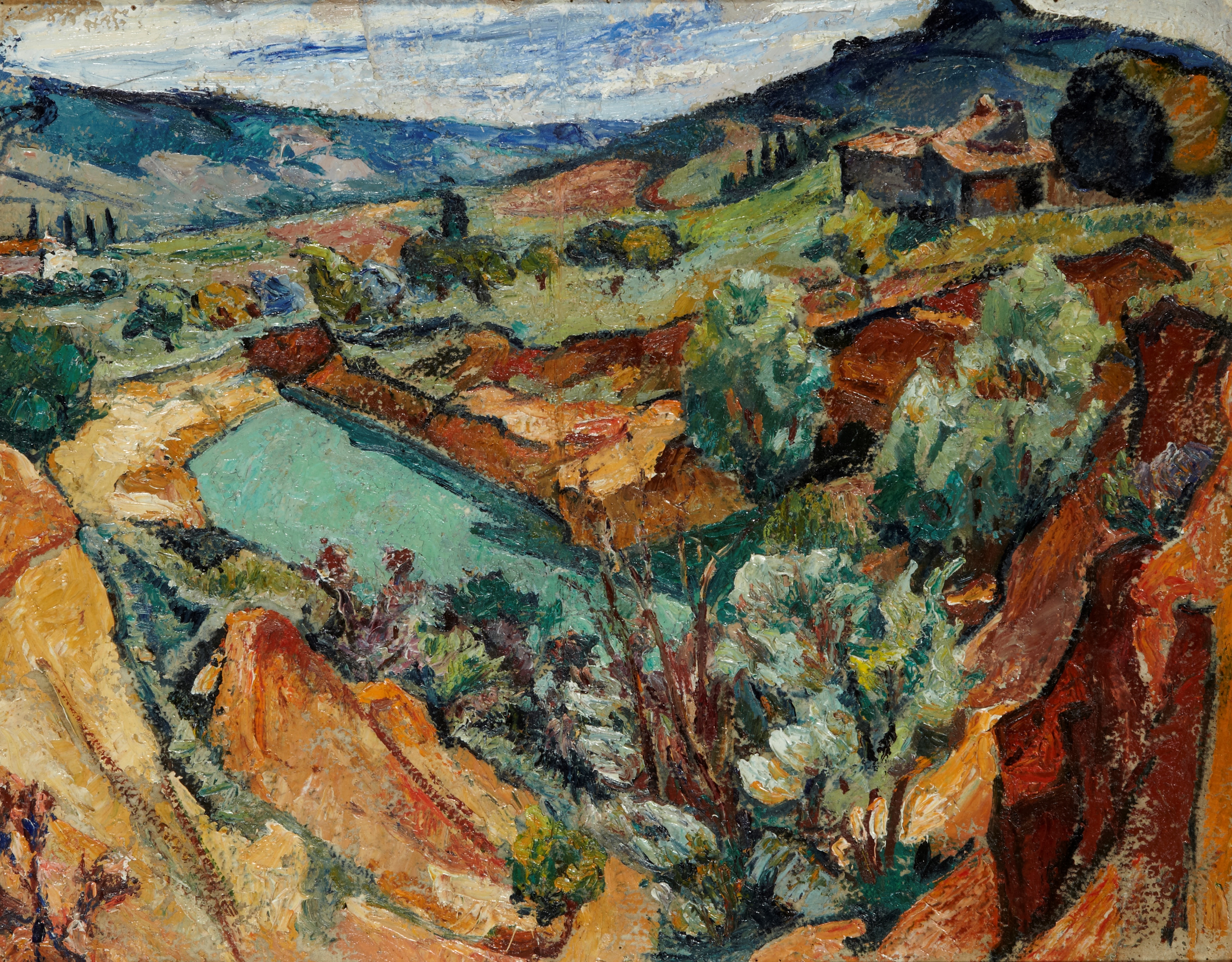 Condition, The painting is in good condition, showing minor framing marks, areas of retouching affecting the margins and tiny stains. The frame has major losses. The size of the painting is 69.5 x 49 cm, the framed dimensions are 82 x 61.5 cm.