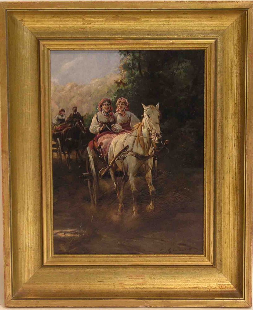 W ‘After the battle’ widzę dwóch smutnych francuskich weteranów kampanii moskiewskiej (jeden o twarzy przypominającej Napoleona) idących przez XX wieczną polską wioskę. Kobieta z dzieckiem na ręku z chustą na głowie patrzy na nich ze zdziwieniem bo skąd się oni wzięli tam sto lat po przegranej kampanii. Psy szczekają a oni smętnie idą przez wieki. Dodatkowo, praca ta jest synowana w sposób w jaki Wojciech Kossak sygnował jedynie swoje ważne prace. Ta jest datowana (1920) gdy ważyły się losy Polski w walce z bolszewicką zarazą. Powstawały wówczas w pracowniach Wojciecha i Jerzego lepsze prace, nawiązujące do współczesnych im sytuacji. $15,000-25,000 dolców australijskich? Fe.