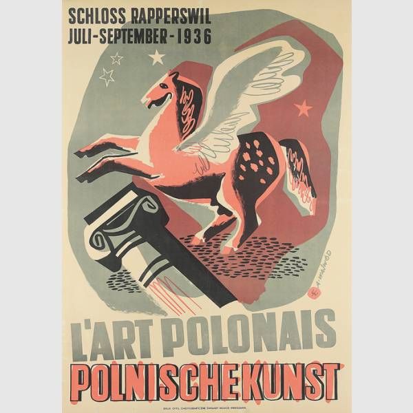 Lot 1113. Wajwód, Antoni. L’Art Polonais/Polnische Kunst. Schloss Rapperswil. Juli-September 1936. Farb-Offset. Warschau, Chemigraficzne Zaklady Helios, 1936. 76 x 54 cm.