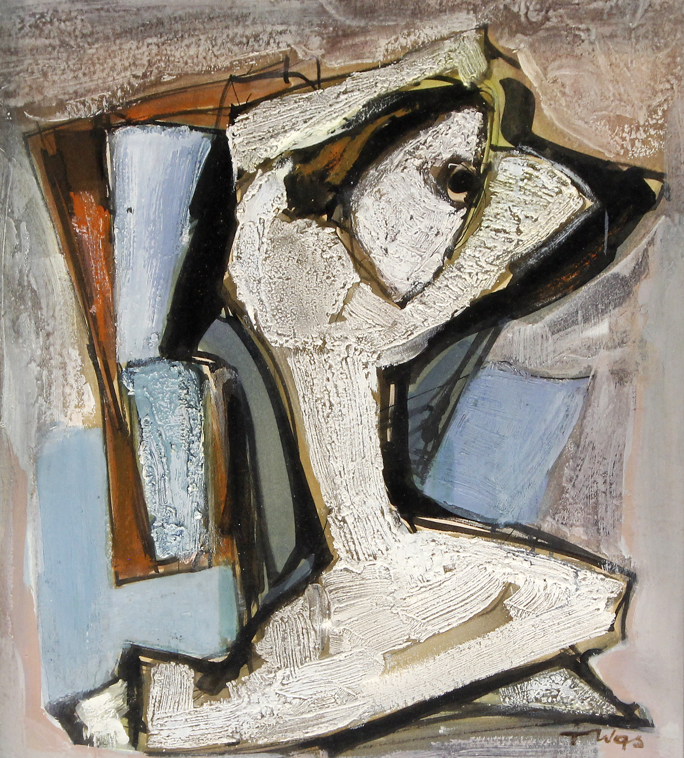Lot 1134. Tadeusz Was (Polish, 1912-2005) – ‘Abstract Figurative’ Thick impasto and mixed media, signed, approx 42x33cm, framed. (illustrated)