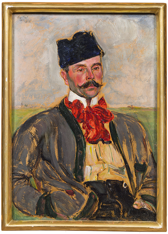 Vlastimil Hofmann *(Prag 1881-1970 Prag). Selbstporträt, 1908. Öl auf Karton; 50,5 × 35 cm. Signiert und datiert links oben: Vlastimil / Hofmann / 1908