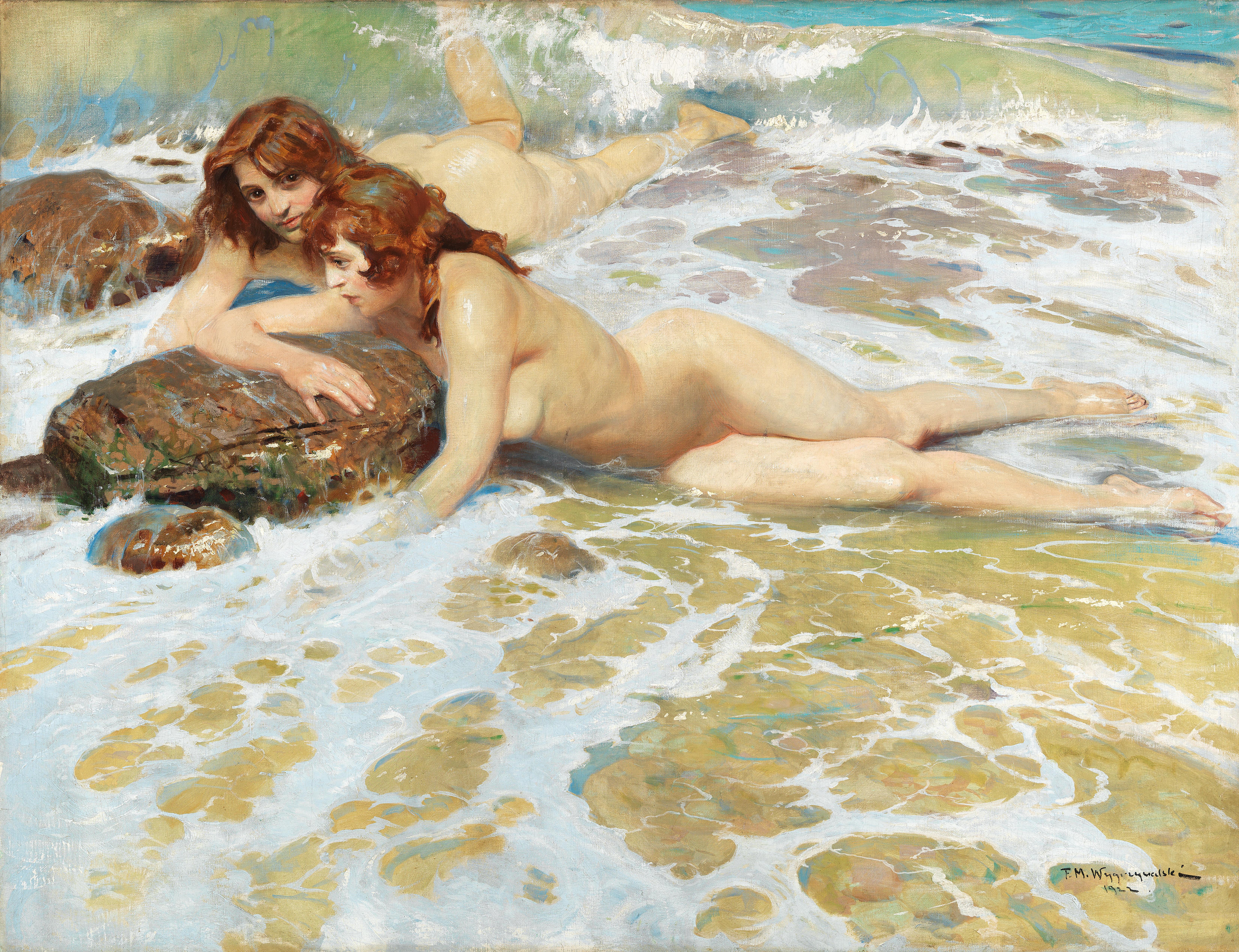 Mermaids, signed, dated F. M. Wygrzywalski 1922, oil on canvas, 98 x 122 cm, framed