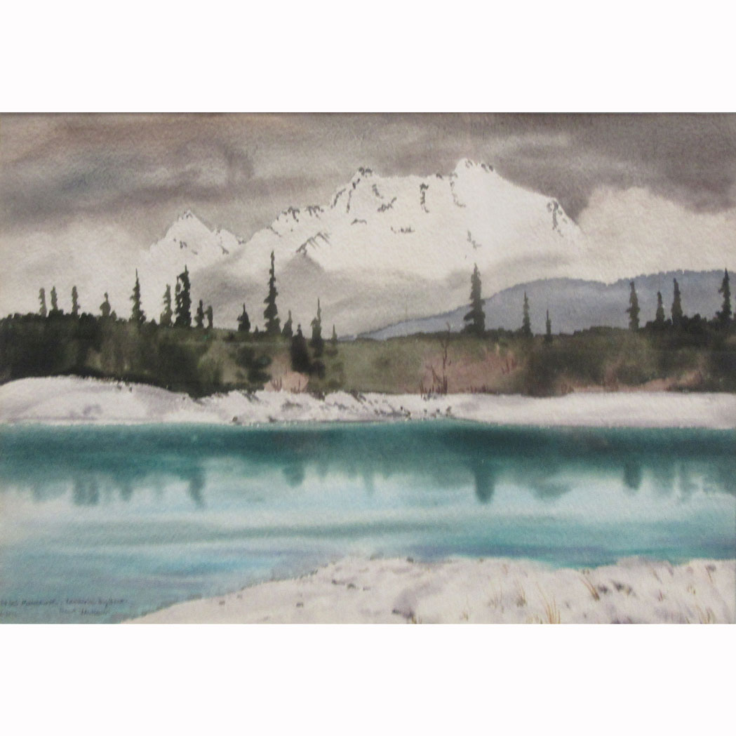 Signed Rafal Malczewski., dated X-1943 and inscribed Columbia Big Bend. / Mount Warsaw (ll). Watercolor on paper. Sight 14 5/16 x 21 5/16 inches