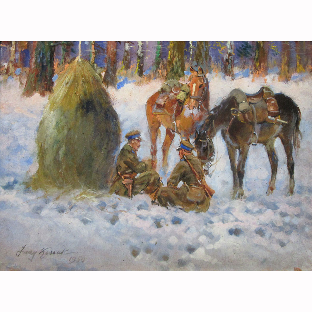 Lot 43. Jerzy Kossak Polish, 1886-1955. Soliders at Rest, 1950. Signed Jerzy Kossak and dated 1950 (ll)