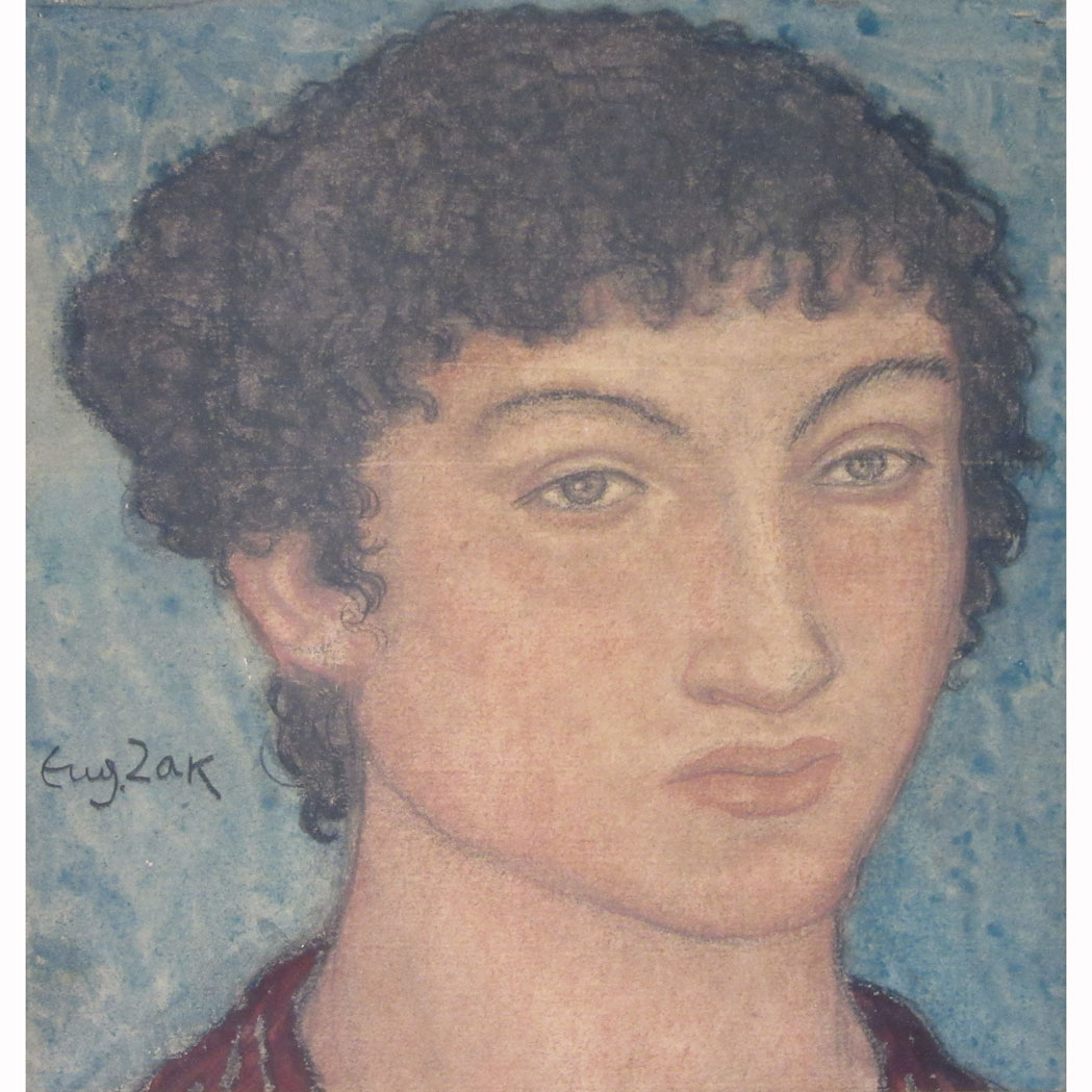 Lot 82. Eugene Zak Polish, 1884-1926. Portrait of a Raven-Haired Woman. Signed Eug. Zak (ll). Watercolor, crayon and graphite on paper. Sight 8 x 7 1/2 inches