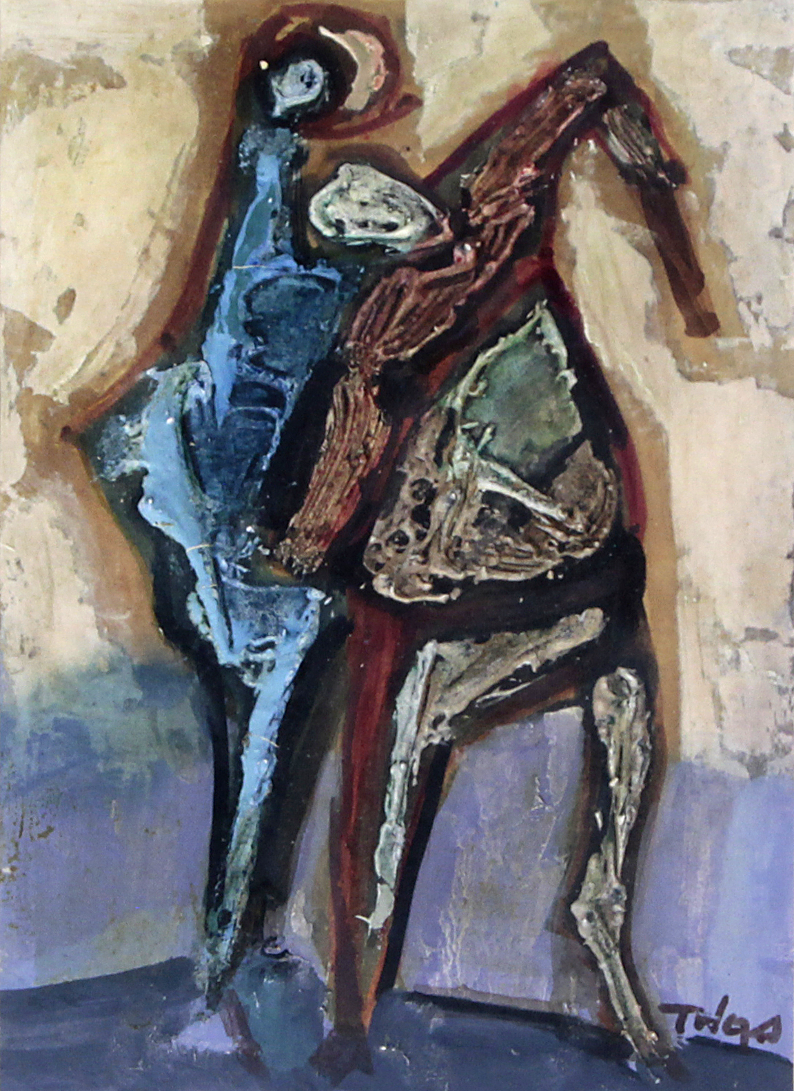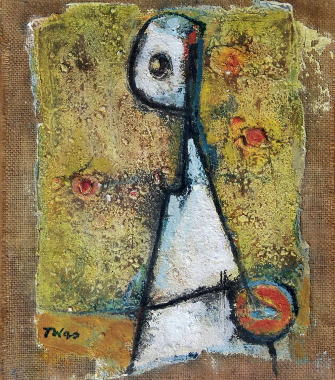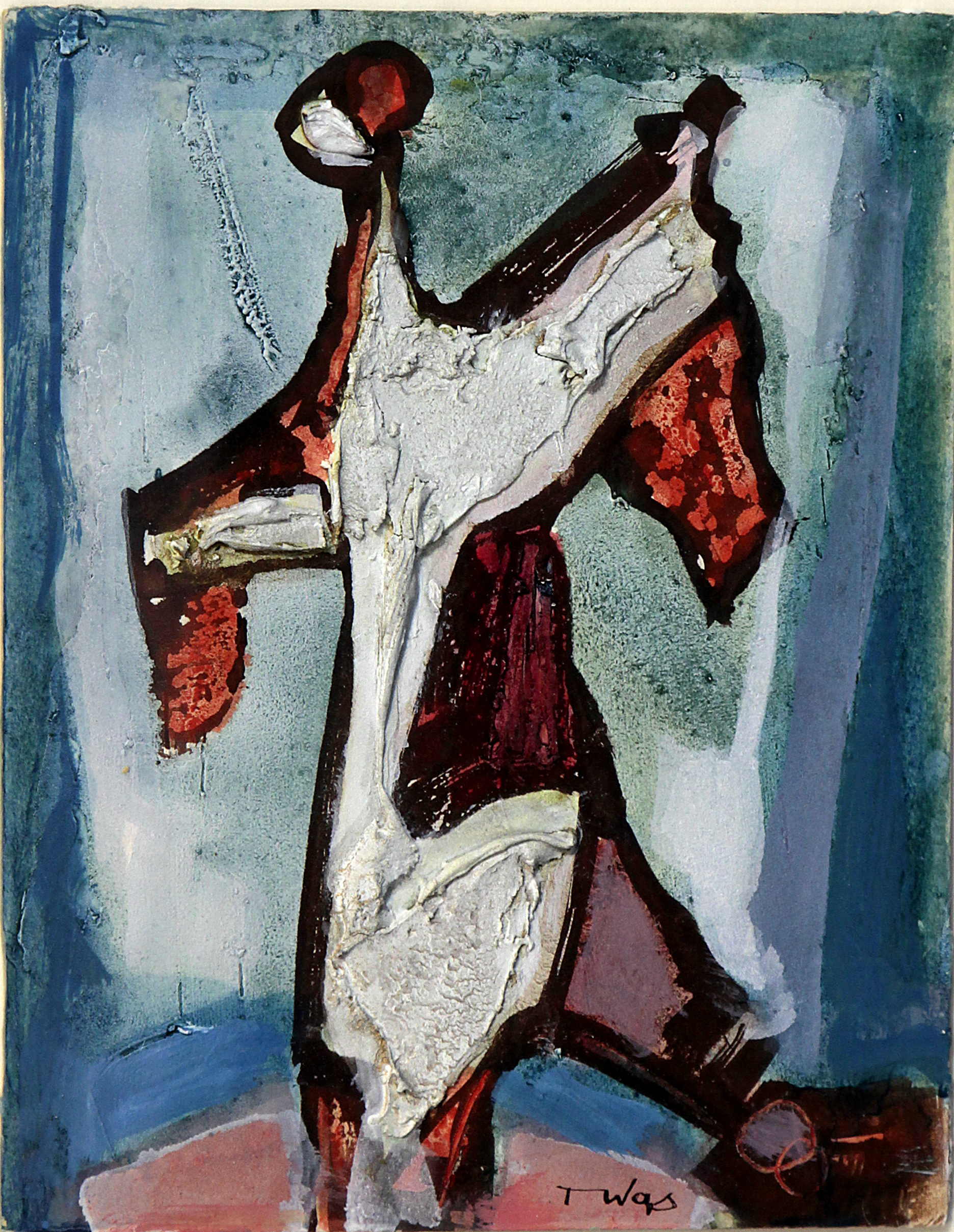 Lot 631. Tadeusz Was (Polish, 1912-2005) – ‘Abstract figure’ Thick impasto and mixed media, signed, approx 21x17cm, framed.