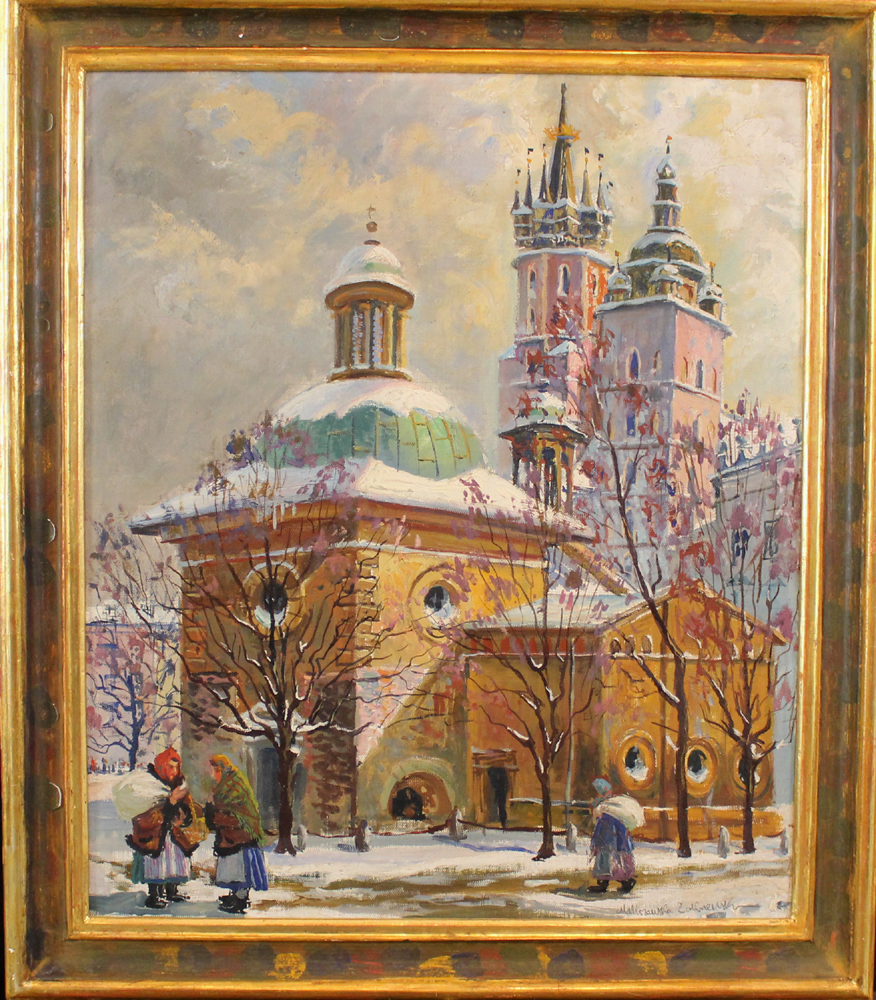 Lot 241. Janina Maliszewska-Zakrzewska (1909-1982), St.Wojciecha Chappel with some merchant womans, oil on boards, framed, 71×60 cm