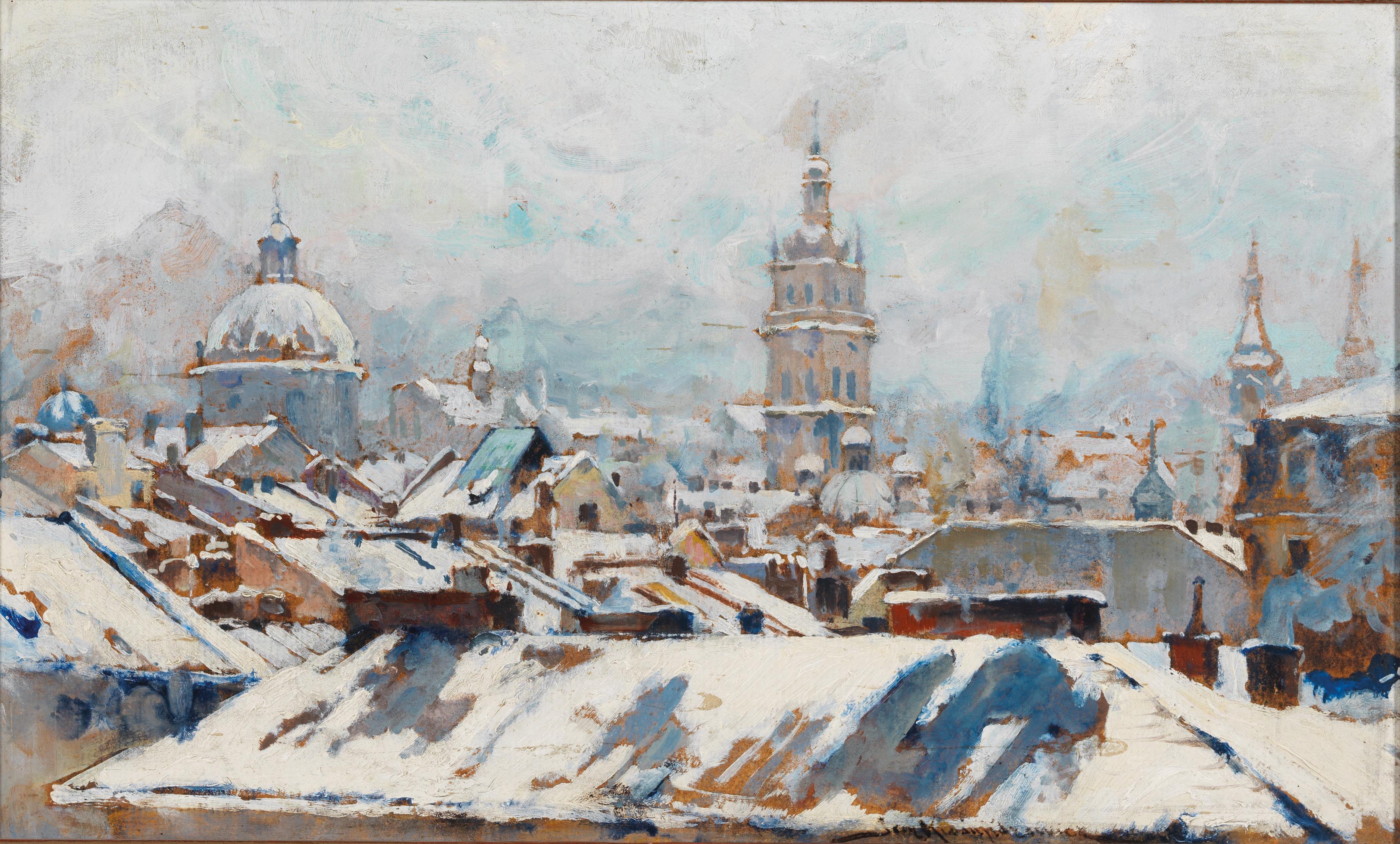 Jan Kazimierz Kuśmidrowicz (1886 – 1938) Posted by 72blog104 0 Chyba jednak nie Warszawa. ——————————————- Lot 109. Jan Kazimierz Kusmidrowicz (born in 1886). Snow-Covered Roofs (Warsaw?), signed Jan Kusmidrowicz, oil on board, 30 x 49 cm, framed Estimate 1,500-2,000 euro. Dorotheum. 12/7/15