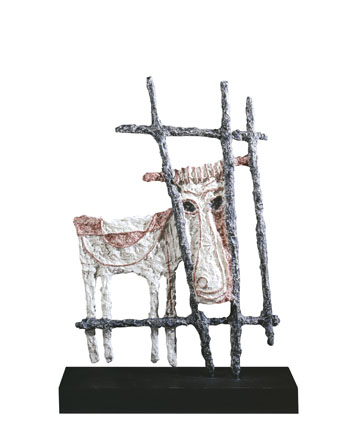 Boeuf derrière la haie – c. 1938 Bronze polychrome, signé, cachet J.D.V, cachet de la fonderie TEP. Justificatif de tirage n° 2./8. Tirage posthume original limité à 8 exemplaires, plus 4 épreuves d’artiste, avec l’autorisation des héritiers du droit moral. Une attestation d’origine signée par les filles de l’artiste sera remise à l ‘acquéreur. 134,5 x 96 x 25 cm