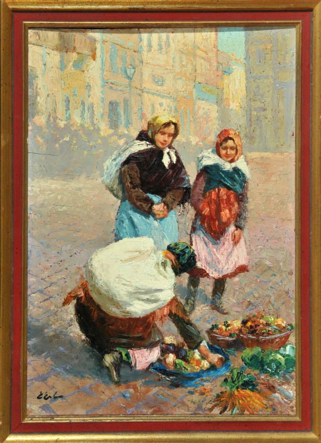 Erno Erb (1878 – 1943) Posted by 72blog104 0 Lot 1398. Erb, Erno, 1878 – 1943 Lwów Öl/Holz, 50 x 35 cm, ” Gemüseverkäuferinnen am Marktplatz “, u.l. sign., Lit.: Vollmer, Busse, Saur Reserve 1,500 euro. Allgäuer Auktionshaus. 04/09/16