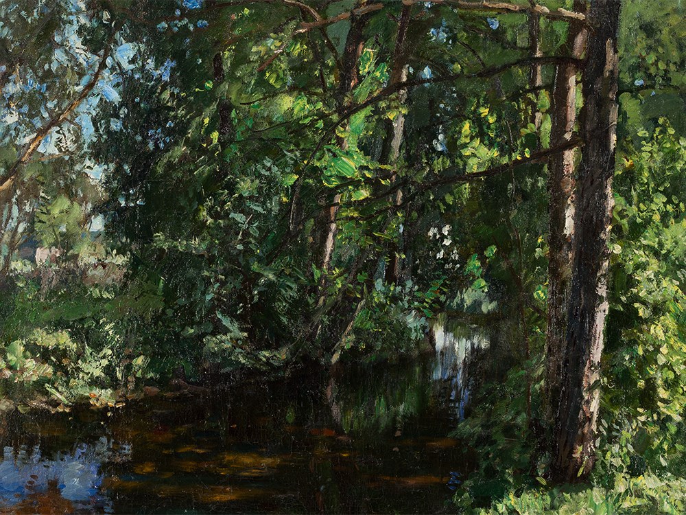In 1892 Stanislaw Zukowski attended the Moscow School of Painting, Sculpture and Architecture as a pupil of Makowski and Arkhipov. In addition, he was taught by the great Russian painter Isaak Ilyich Levitan. Already as a student he was honored with several awards, his work ‘Moonlit Night’ was purchased by the Tretyakov Gallery. From 1895 Zukowski regularly participated in exhibitions in Moscow. He was a member of the group ‘Mir Iskusstva’ and the Union of Russian Artists. Zukowski was a celebrated landscape painter in Russia in the tradition of Impressionism; the Russian patron Pavel Tretyakov bought several of his works. Later the artist also received awards abroad, e.g. at the International Art Exhibition in Munich. In 1912 he visited Europe, traveling through Switzerland, Germany, France and Italy. After the October Revolution Zukowski initially stayed in Moscow, then worked in Poland, where he taught young artists. In the 1920s, Zukowski’s works were exhibited in the US and Canada, as well as Paris and Copenhagen. Recurring themes in the artist’s oeuvre are landscapes, as well as interiors and window views. His paintings are exhibited in the Tretyakov Gallery, the Russian Museum, the Museum of Russian Art in Kiev, the National Art Museum of Belarus in Minsk, the National Museum in Warsaw, and the National Gallery in Krakow.