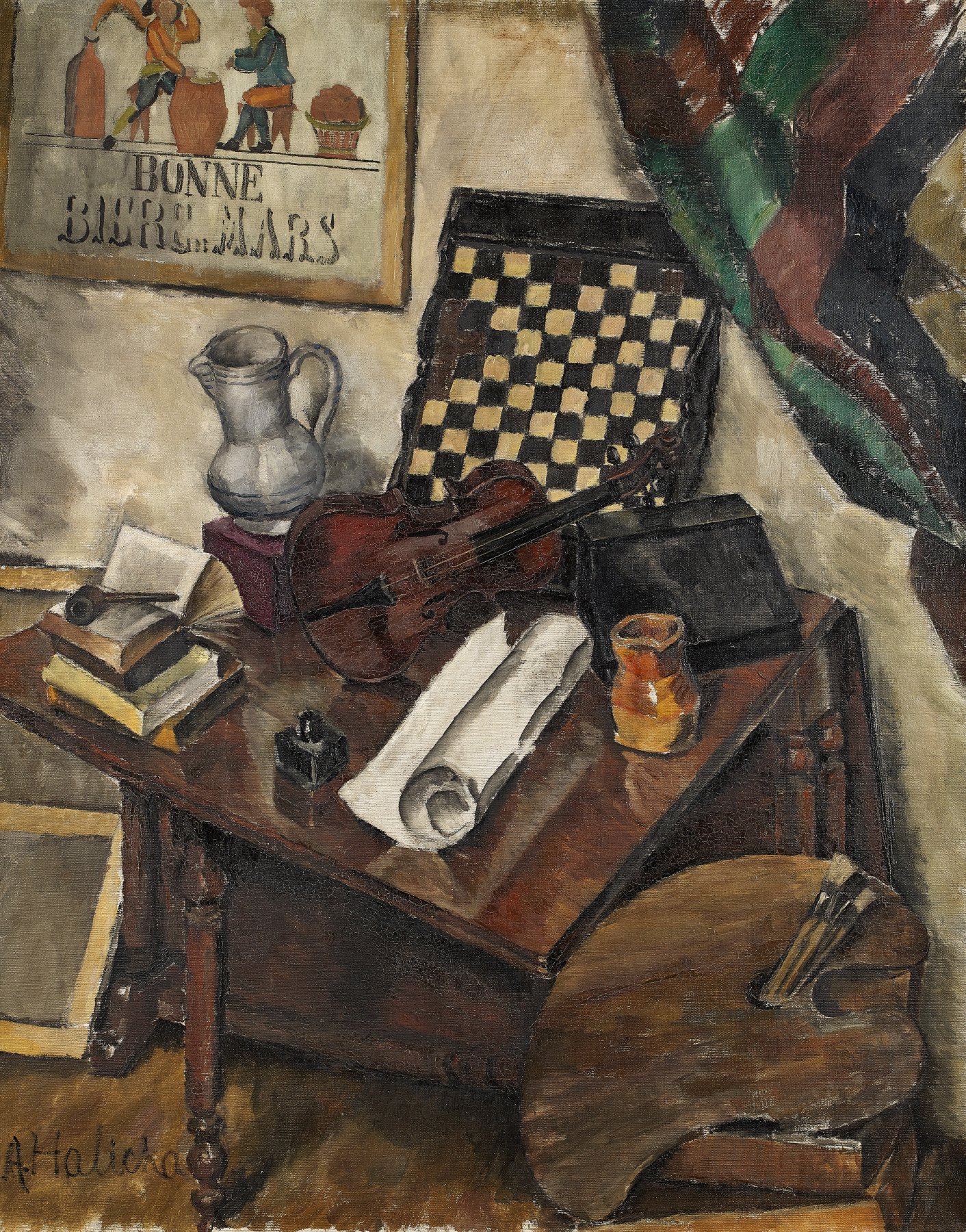 Huile sur toile. Signée en bas à gauche “A. Halicka”, contresignée et titrée au dos “A. HALICKA nature morte”. 146 x 114 cm (57,48 x 44,88 in.)