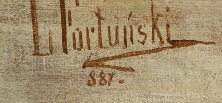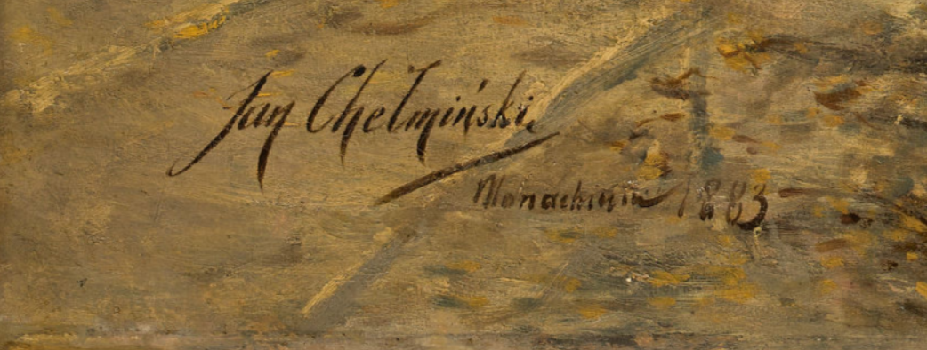oil on canvas; 101 × 168 cm, signed, inscribed and dated lower left: Jan Chelminski. / Monachium 1883