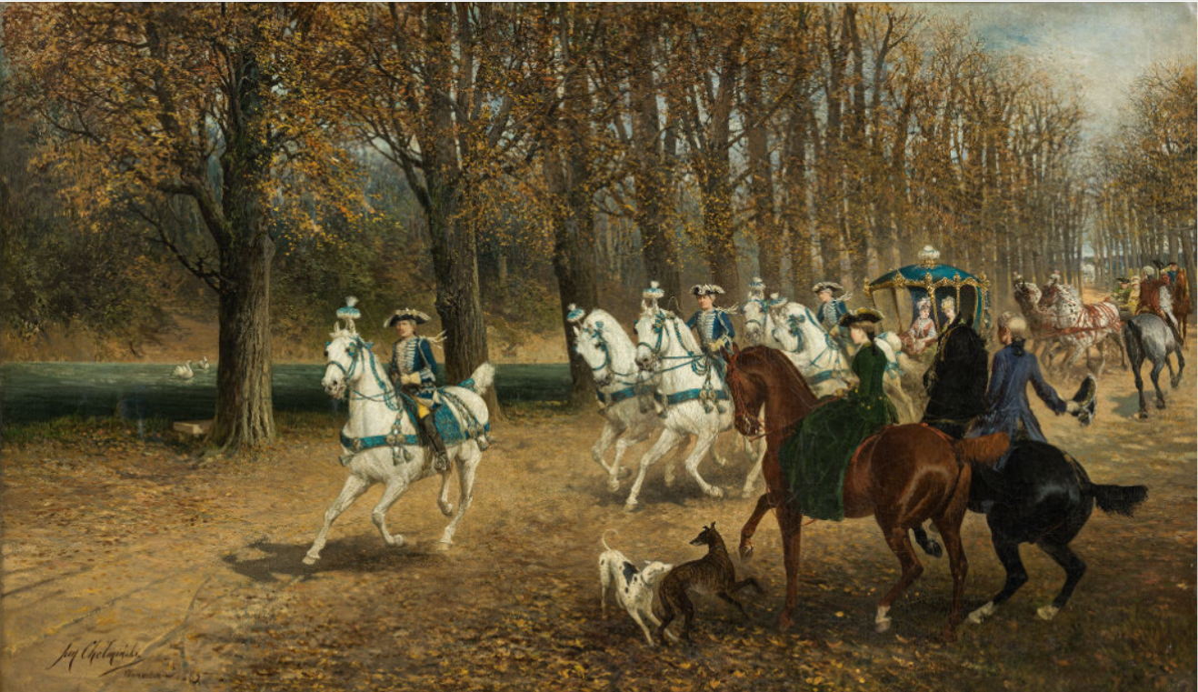 Carriage ride of an elegant society, 1883
