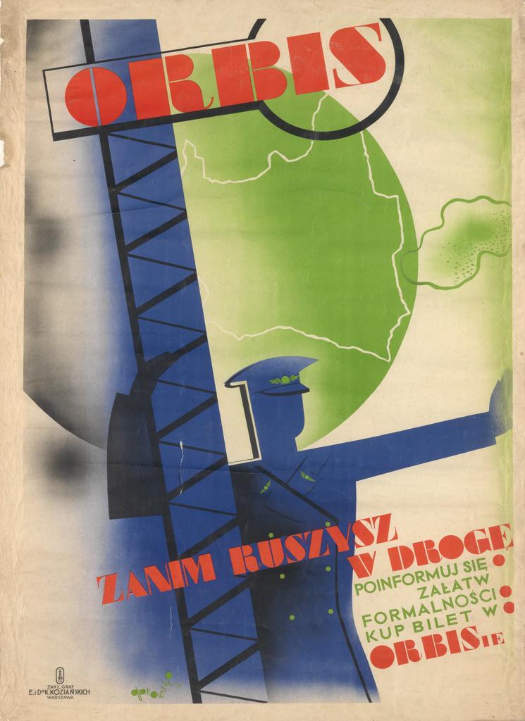 Norblin was a painter, illustrator, set and costume designer, portraitist and poster designer. In 1939, Norblin left Poland and wound up in Iraq, where he painted portraits of the royal family. The war, which had started while he was gone, prevented Norblin from returning home, and in 1941 he moved to India where he stayed for five years. While there, he was commissioned to design the interiors of the royal palace at Umaid Bhawan which included murals, furniture and portraits. This led to other commissions for which he designed interiors for several other palaces. In 1946, unwilling to return to his homeland now under Communist control, Norblin moved to San Francisco, where he continued painting portraits, including that of General Douglas MacArthur, which hangs in the Pentagon. Norblin took his own life in 1952 when he was diagnosed with glaucoma and couldn’t face the prospect of losing his eyesight. “Torun, once the largest and most important Hanseatic trading center on the Vistula, is best known for its Gothic architecture and as the birthplace of Nicolaus Copernicus (1473-1543). It was the capital of Pomerania and had a pre-war population of 80,000” (Polish Poster p. 59). Polish Poster 99, Gebrauchsgraphik April 1, 1936, p. 44 (var).