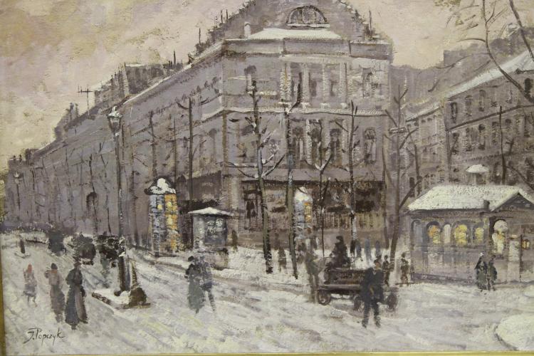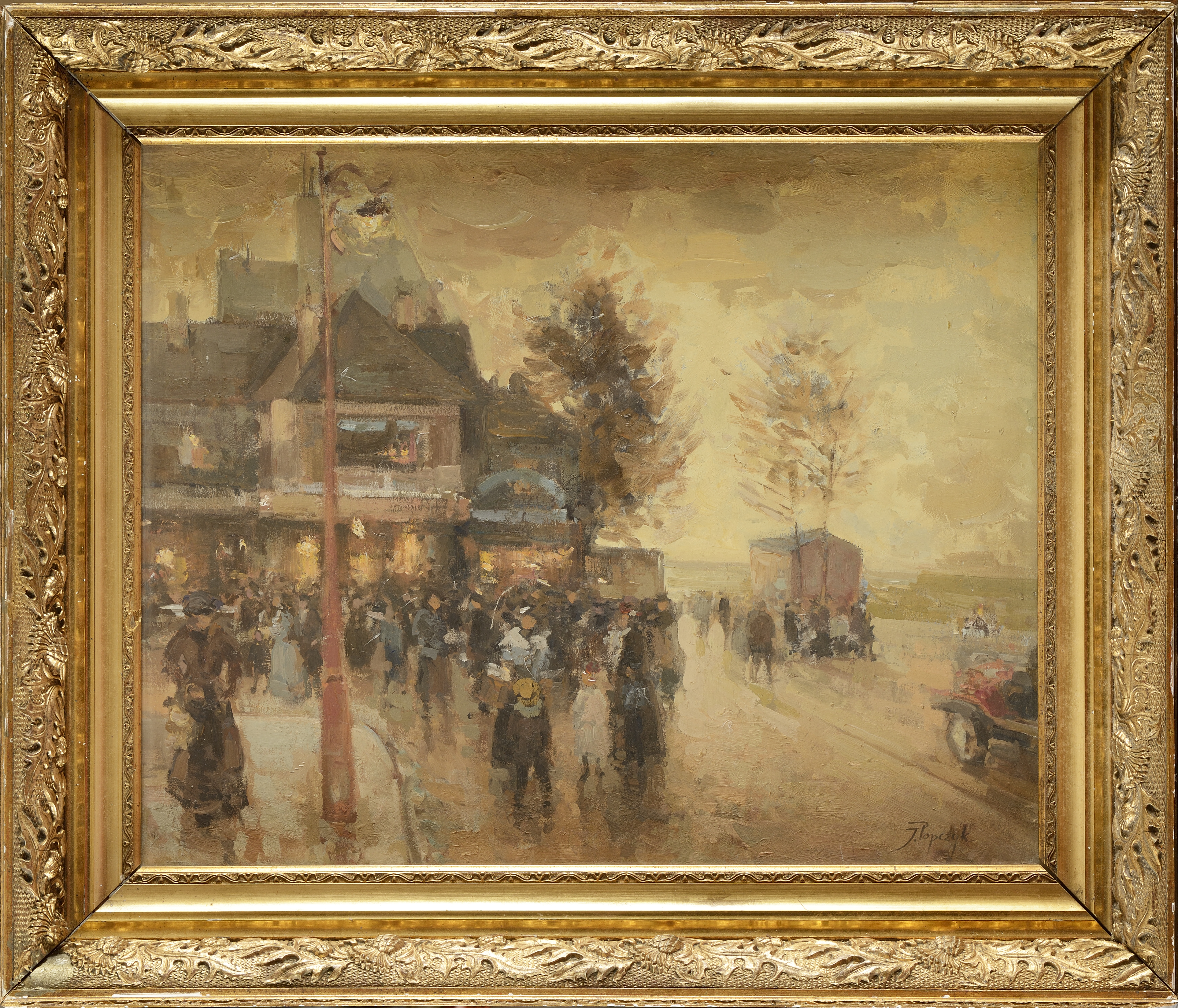 Lot 151. Jozef POPCZYK (1890-1971) La place de la République au crépuscule Huile sur carton Signée en bas à gauche 27 x 35 cm Oil on carboard, signed lower left, 10 5/8 x 13 3/4 in.