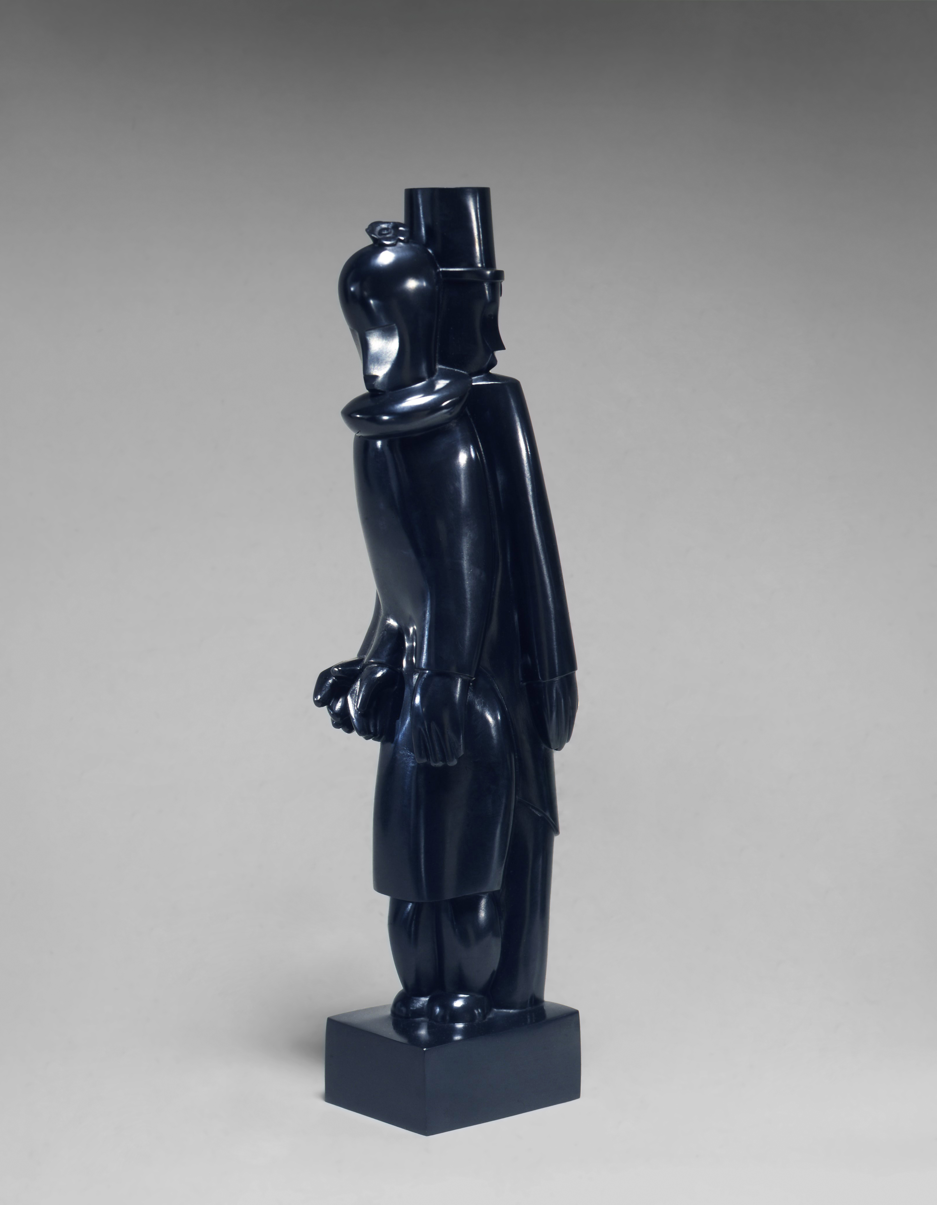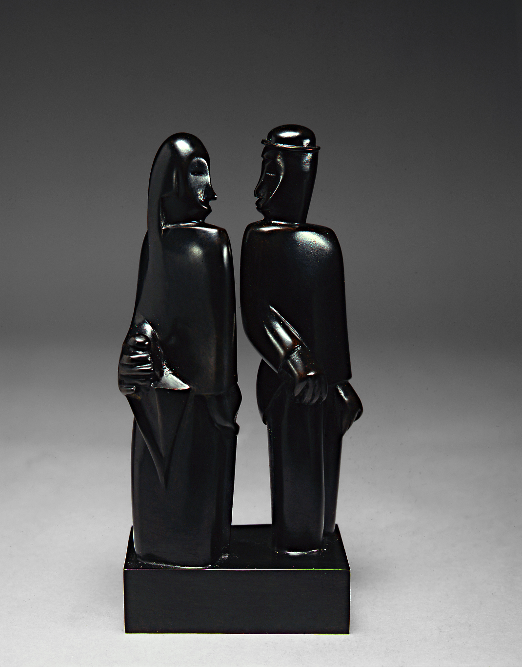 Couple au chapeau gibus PM, Circa 1923 -1925 Bronze à patine noire, signé, cachet J.D.V, cachet de la fonderie BLANCHET. n°5/8.