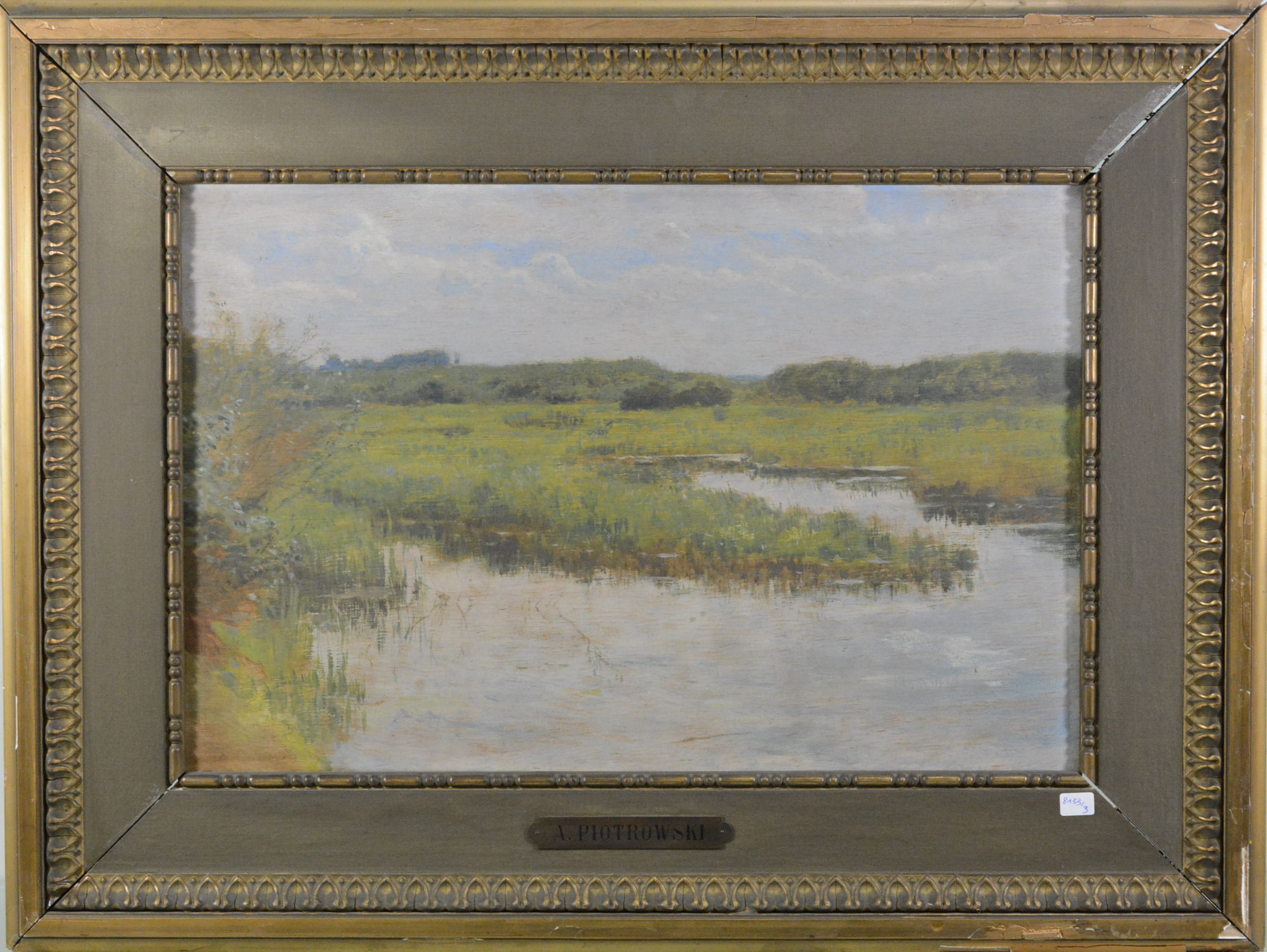 Oprócz blaszki na ramie z nazwiskiem ‘A. Piotrowski’ niewiele wspólnego z naszym malarzem. W lewym dolnym rogu widoczne ślady po usunietym nazwisku innego malarza.