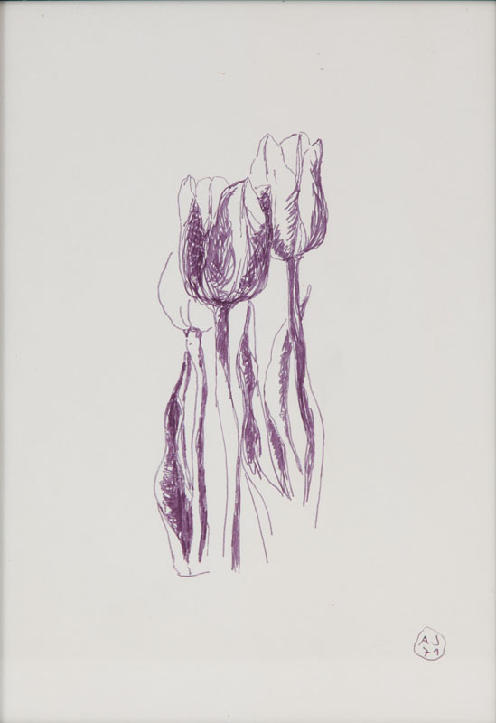 lot 695. Alina Szapocznikow (1926-1973), Tulipes, encre sur papier, monogrammée et datée (19)79, 40×27 cm (feuille)