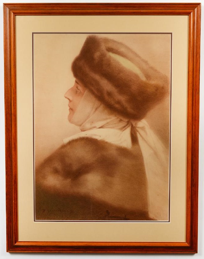 Piotr Stachiewicz (1958 – 1938) Posted by 72blog104 0 Lot 0275. Piotr Stachiewicz. “Woman in a Fur Hat”. Signed l/l. Pastel on Paper. Measuring 24” by 17”. Framed under Plexiglas. Estmate $800 – 1000. Palm Beaches. 02/20/17