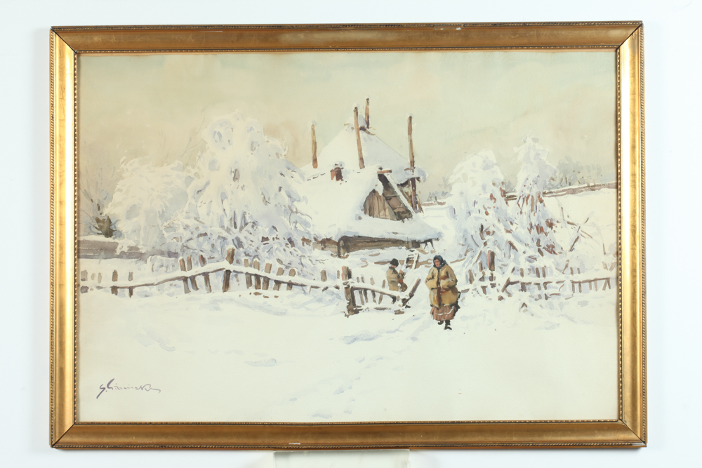 Lot 78. Thadée MAKOWSKI (1882-1932) “Galerie Chéron voeux pour l’année 1930” technique mixte mbg datée 1930 avec envoi au dos “Mes hommages à Madame Chéron amitiés et mes meilleurs voeux de Bonheur” Tadé Makowski 17.5×21.5.Après des études à l’Université de Cracovie, Makowski se lie à Paris au milieu artistique de l’avant-garde et fréquente les artistes cubistes, Gleizes, Léger, Mondrian, Metzinger… Dès 1913, il découvre la Bretagne à Ploumanac’h, puis Slewinski le logera à Doëlan pendant la première guerre mondiale. Dans les années 1920, il s’éloigne du cubisme et atteint une maturité par une synthèse de triangles, cônes, cylindres et une expression de grotesques. L’atmosphère poétique des compositions est produite par un jeu spécifique d’effets de lumière. Dans de nombreux tableaux il exploite le répertoire métaphorique des motifs et thèmes du théâtre et de la mascarade (masques, enfants, marionnettes et Pierrots). Extrait : « Peintres Polonais en Bretagne » 1890-1939).