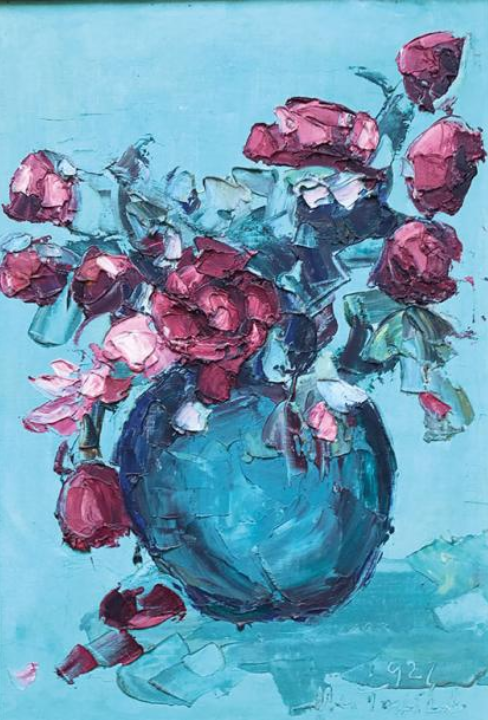 | Easel and a Guitar, Oil on canvas, 130X87 cm. Signed twice. |